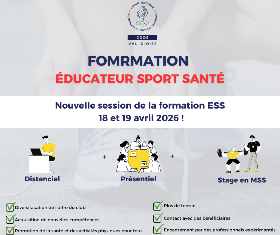 Une nouvelle session de formation Educateur sport santé est programmée pour le week-end du 18 et 19 avril 2026 !